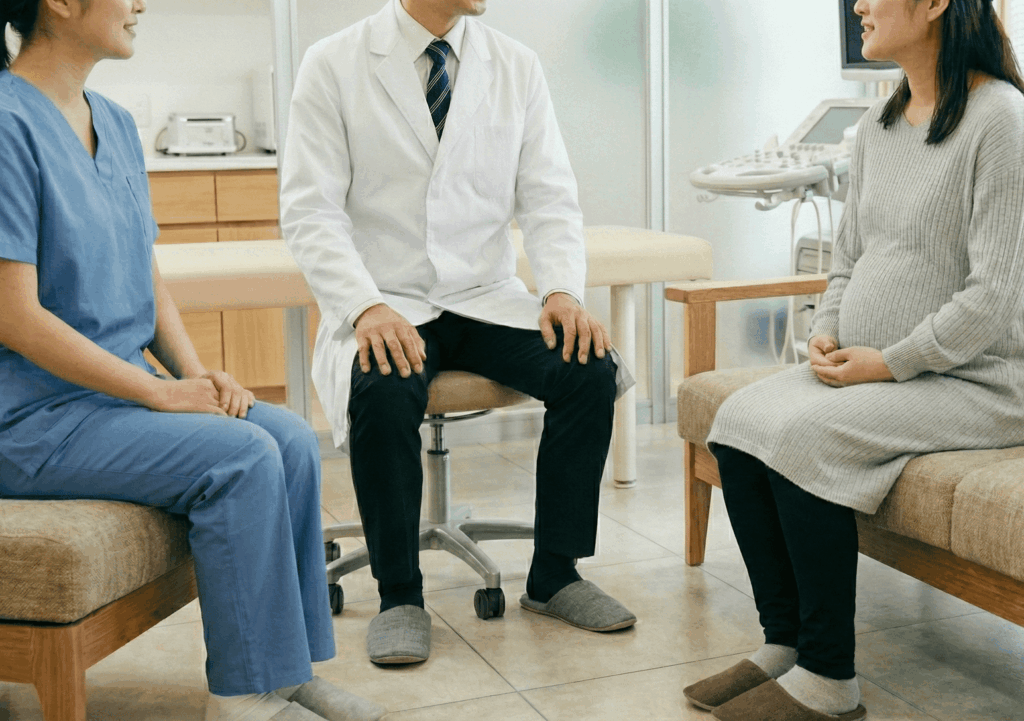 診察室での医師による医学的な管理、助産師や看護師による専門的なケアや悩み相談、管理栄養士による食事指導はもちろん、身の回りのお世話や環境作りを行う看護補助者まで、全スタッフが密に連携。 医療のプロと、生活を支えるサポートスタッフが職種の垣根を超えて情報を共有し、「誰に声をかけても私のことを分かってくれている」という安心感を提供します。 「チーム山田」の総合力で、妊娠中から退院後の生活まで、多角的で手厚いサポートをお約束します。